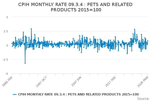 Download this time seriesCPIH MONTHLY RATE 09.3.4 : PETS AND RELATED PRODUCTS 2015=100