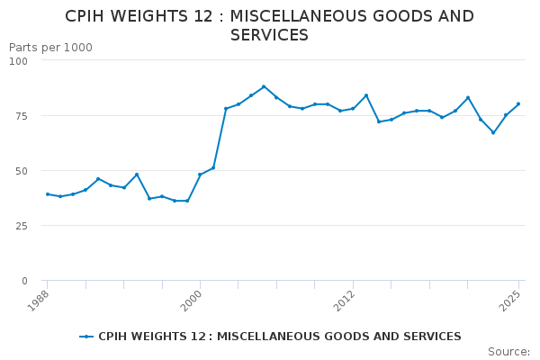 Download this time seriesCPIH WEIGHTS 12 : MISCELLANEOUS GOODS AND SERVICES