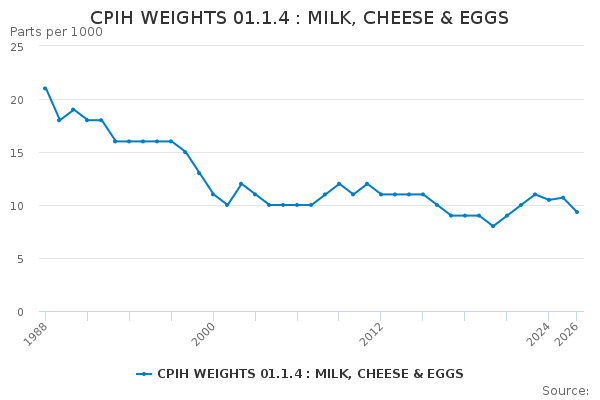 Download this time seriesCPIH WEIGHTS 01.1.4 : MILK, CHEESE & EGGS