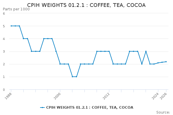 Download this time seriesCPIH WEIGHTS 01.2.1 : COFFEE, TEA, COCOA