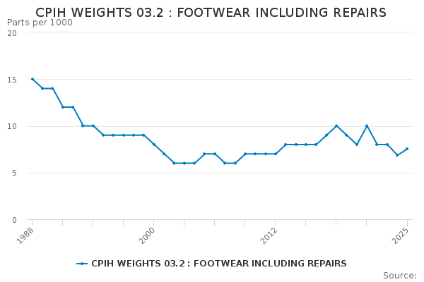 Download this time seriesCPIH WEIGHTS 03.2 : FOOTWEAR INCLUDING REPAIRS