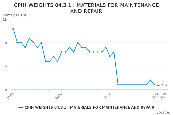 Download this time seriesCPIH WEIGHTS 04.3.1 : MATERIALS FOR MAINTENANCE AND REPAIR