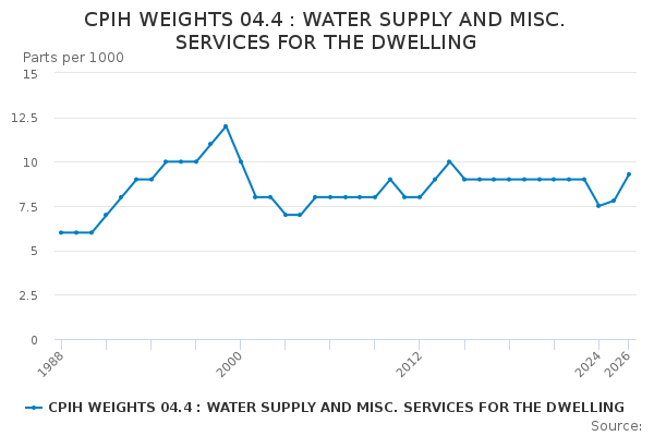 Download this time seriesCPIH WEIGHTS 04.4 : WATER SUPPLY AND MISC. SERVICES FOR THE DWELLING