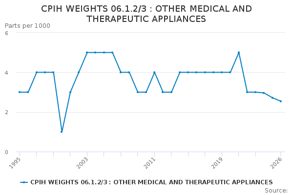 Download this time seriesCPIH WEIGHTS 06.1.2/3 : OTHER MEDICAL AND THERAPEUTIC APPLIANCES