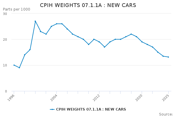 Download this time seriesCPIH WEIGHTS 07.1.1A : NEW CARS