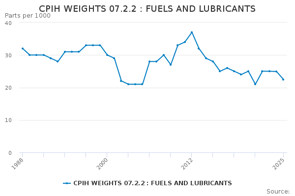 Download this time seriesCPIH WEIGHTS 07.2.2 : FUELS AND LUBRICANTS