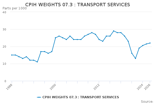 Download this time seriesCPIH WEIGHTS 07.3 : TRANSPORT SERVICES