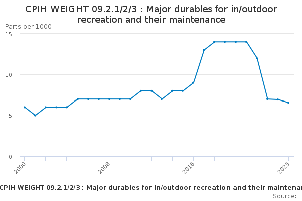 Download this time seriesCPIH WEIGHT 09.2.1/2/3 : Major durables for in/outdoor recreation and their maintenance