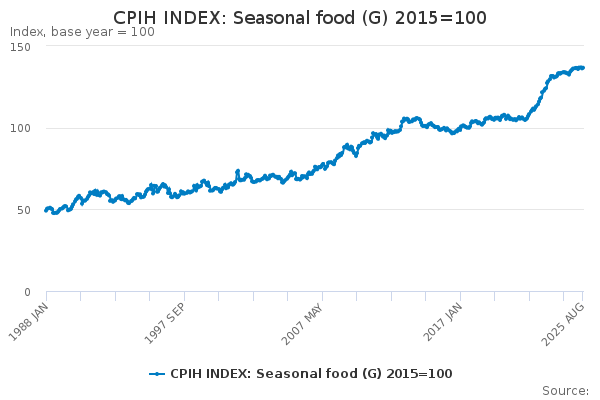 Download this time seriesCPIH INDEX: Seasonal food (G) 2015=100