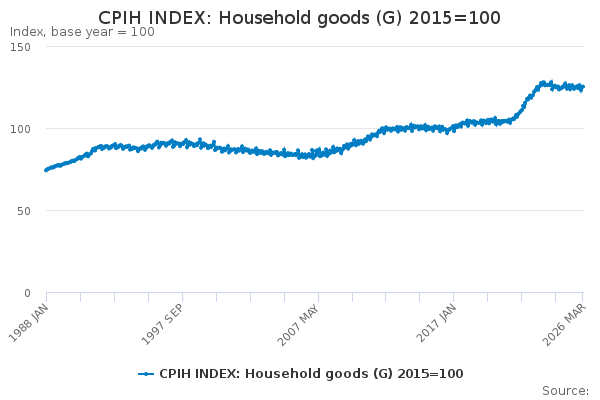 Download this time seriesCPIH INDEX: Household goods (G) 2015=100