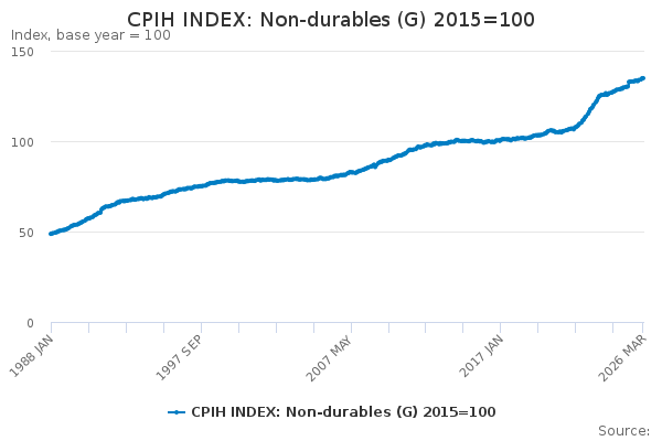 Download this time seriesCPIH INDEX: Non-durables (G) 2015=100