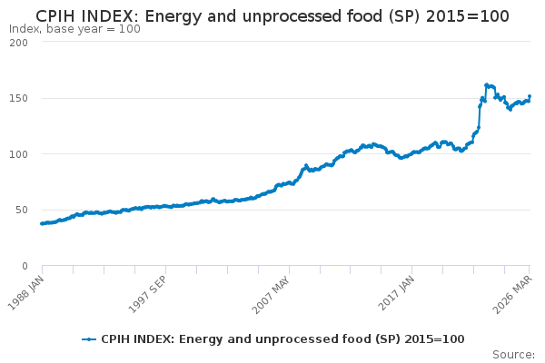 Download this time seriesCPIH INDEX: Energy and unprocessed food (SP) 2015=100
