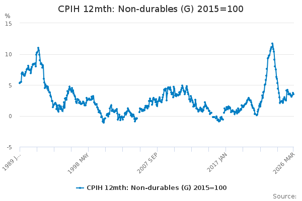 Download this time seriesCPIH 12mth: Non-durables (G) 2015=100