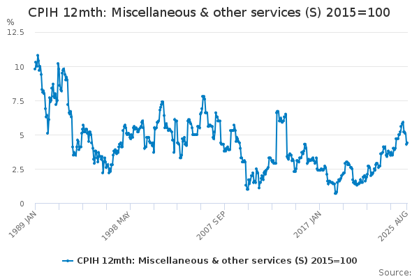 Download this time seriesCPIH 12mth: Miscellaneous & other services (S) 2015=100