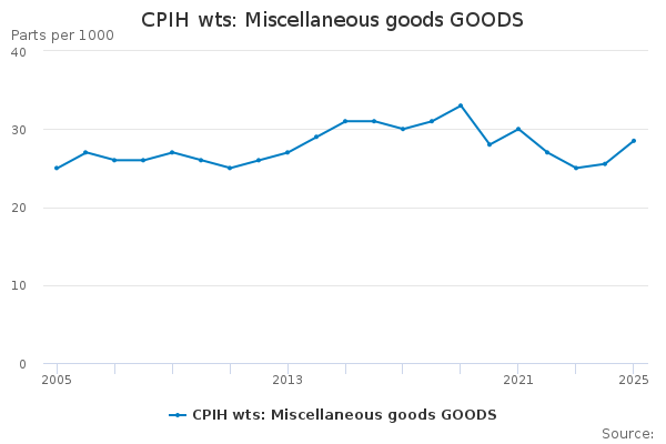 Download this time seriesCPIH wts: Miscellaneous goods GOODS