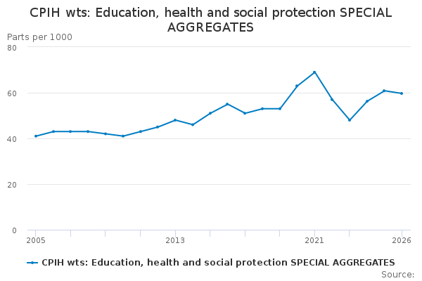 Download this time seriesCPIH wts: Education, health and social protection SPECIAL AGGREGATES