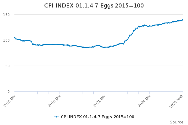 Download this time seriesCPI INDEX 01.1.4.7 Eggs 2015=100