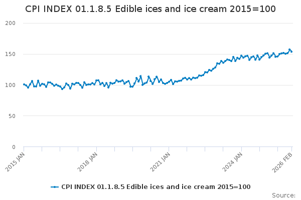 Download this time seriesCPI INDEX 01.1.8.5 Edible ices and ice cream 2015=100