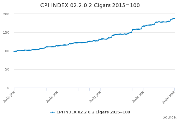 Download this time seriesCPI INDEX 02.2.0.2 Cigars 2015=100