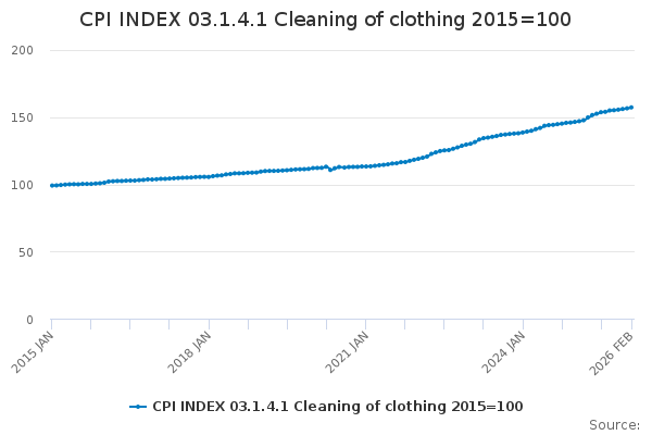 Download this time seriesCPI INDEX 03.1.4.1 Cleaning of clothing 2015=100
