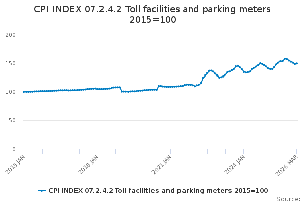 Download this time seriesCPI INDEX 07.2.4.2 Toll facilities and parking meters 2015=100