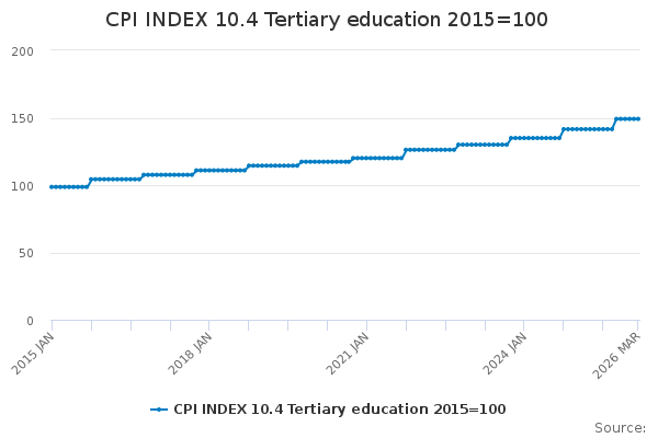 Download this time seriesCPI INDEX 10.4 Tertiary education 2015=100