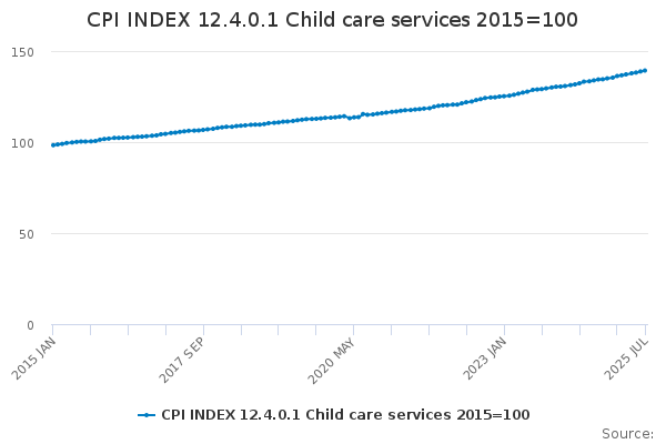 Download this time seriesCPI INDEX 12.4.0.1 Child care services 2015=100