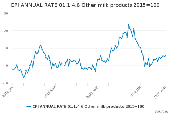 Download this time seriesCPI ANNUAL RATE 01.1.4.6 Other milk products 2015=100