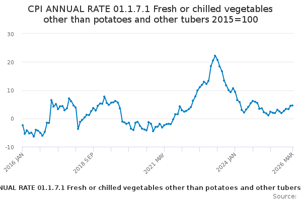 Download this time seriesCPI ANNUAL RATE 01.1.7.1 Fresh or chilled vegetables other than potatoes and other tubers 2015=100
