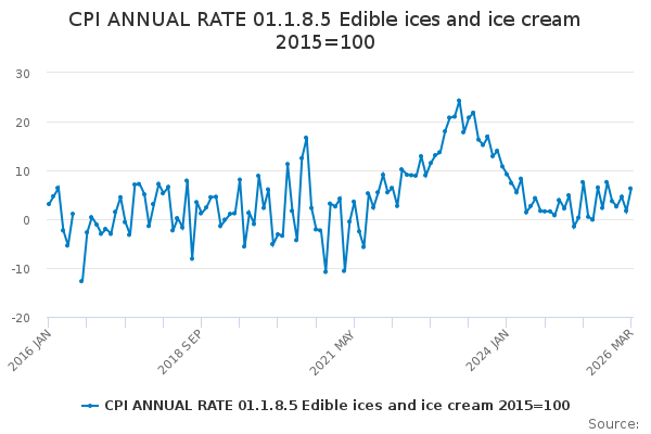 Download this time seriesCPI ANNUAL RATE 01.1.8.5 Edible ices and ice cream 2015=100