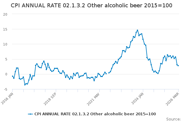 Download this time seriesCPI ANNUAL RATE 02.1.3.2 Other alcoholic beer 2015=100