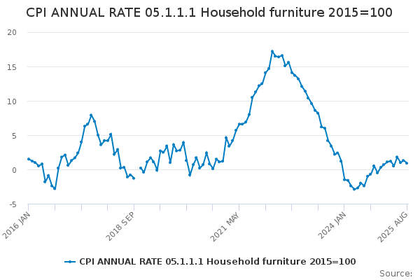 Download this time seriesCPI ANNUAL RATE 05.1.1.1 Household furniture 2015=100