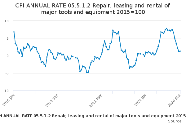 Download this time seriesCPI ANNUAL RATE 05.5.1.2 Repair, leasing and rental of major tools and equipment 2015=100