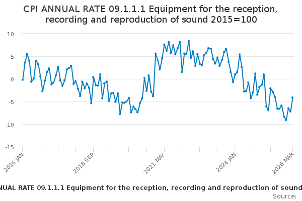 Download this time seriesCPI ANNUAL RATE 09.1.1.1 Equipment for the reception, recording and reproduction of sound 2015=100