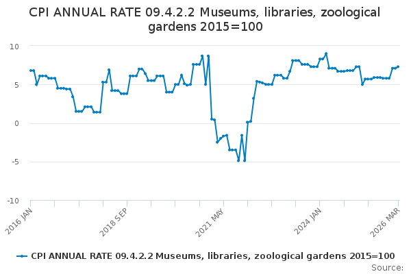 Download this time seriesCPI ANNUAL RATE 09.4.2.2 Museums, libraries, zoological gardens 2015=100