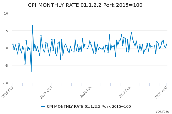 Download this time seriesCPI MONTHLY RATE 01.1.2.2 Pork 2015=100