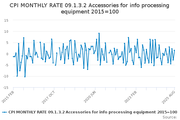 Download this time seriesCPI MONTHLY RATE 09.1.3.2 Accessories for info processing equipment 2015=100