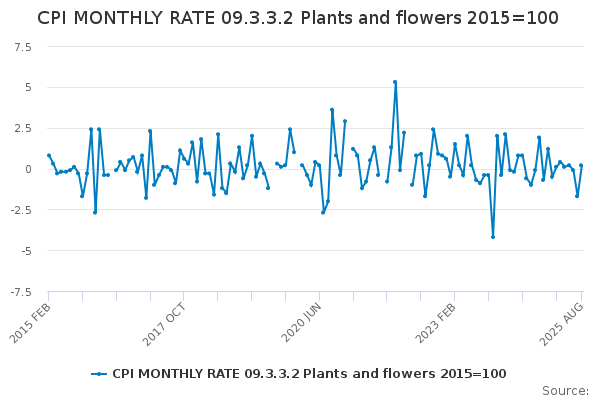 Download this time seriesCPI MONTHLY RATE 09.3.3.2 Plants and flowers 2015=100