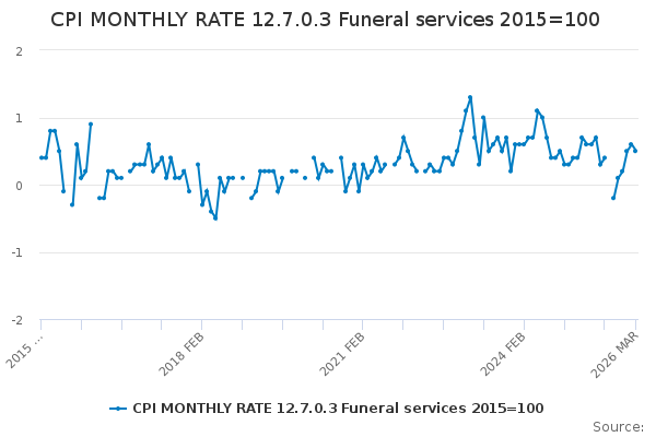 Download this time seriesCPI MONTHLY RATE 12.7.0.3 Funeral services 2015=100