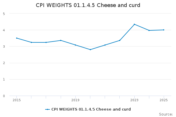 Download this time seriesCPI WEIGHTS 01.1.4.5 Cheese and curd