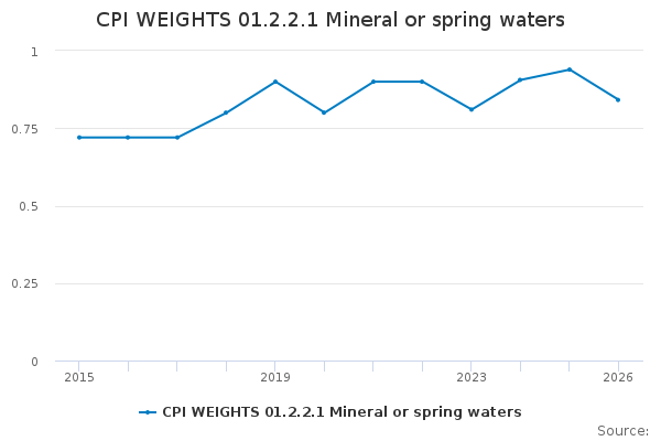 Download this time seriesCPI WEIGHTS 01.2.2.1 Mineral or spring waters