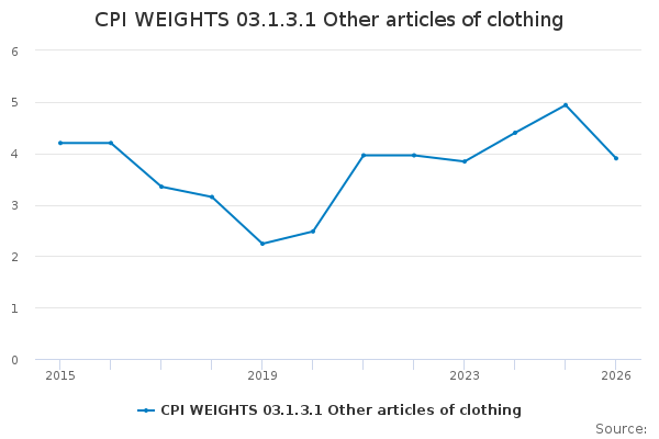 Download this time seriesCPI WEIGHTS 03.1.3.1 Other articles of clothing