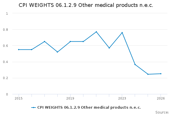 Download this time seriesCPI WEIGHTS 06.1.2.9 Other medical products n.e.c.