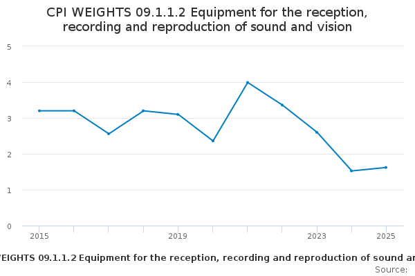 Download this time seriesCPI WEIGHTS 09.1.1.2 Equipment for the reception, recording and reproduction of sound and vision