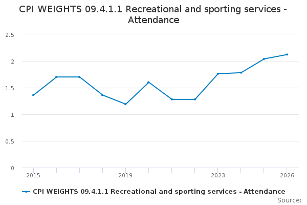 Download this time seriesCPI WEIGHTS 09.4.1.1 Recreational and sporting services - Attendance