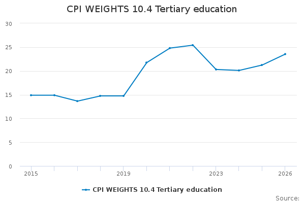 Download this time seriesCPI WEIGHTS 10.4 Tertiary education