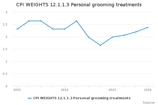 Download this time seriesCPI WEIGHTS 12.1.1.3 Personal grooming treatments