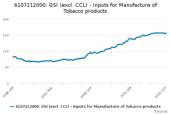 Download this time series6107212000: GSI (excl. CCL) - Inputs for Manufacture of Tobacco products