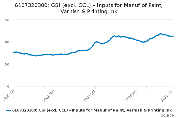 Download this time series6107320300: GSI (excl. CCL) - Inputs for Manuf of Paint, Varnish & Printing Ink