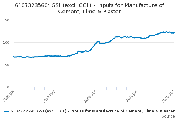Download this time series6107323560: GSI (excl. CCL) - Inputs for Manufacture of Cement, Lime & Plaster
